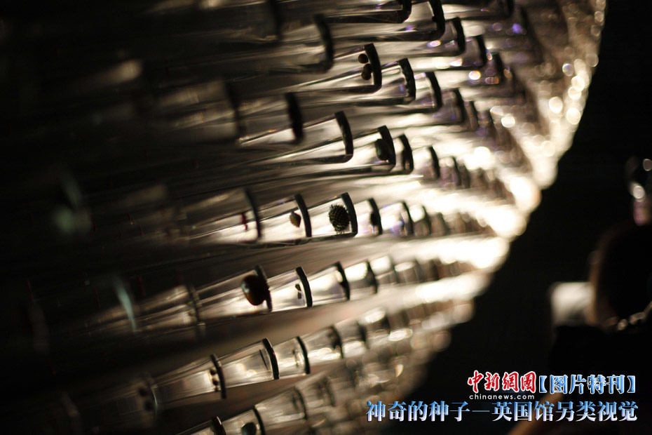 上海世博園開園才數(shù)日,自號(hào)“種子圣殿”的英國(guó)館已成人氣最旺場(chǎng)館之一。該館由6萬根亞克力桿巧妙構(gòu)成,隨風(fēng)搖動(dòng),頗為新奇。其每根桿子里都含有植物種子。中新社記者 盛佳鵬 攝