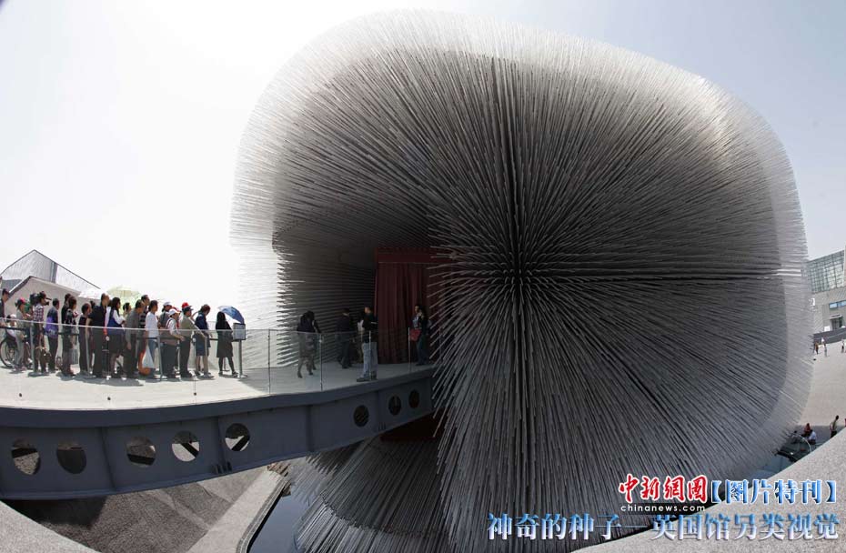 上海世博園開園才數(shù)日,自號“種子圣殿”的英國館已成人氣最旺場館之一。該館由6萬根亞克力桿巧妙構(gòu)成,隨風(fēng)搖動,頗為新奇。其每根桿子里都含有植物種子。中新社記者 盛佳鵬 攝