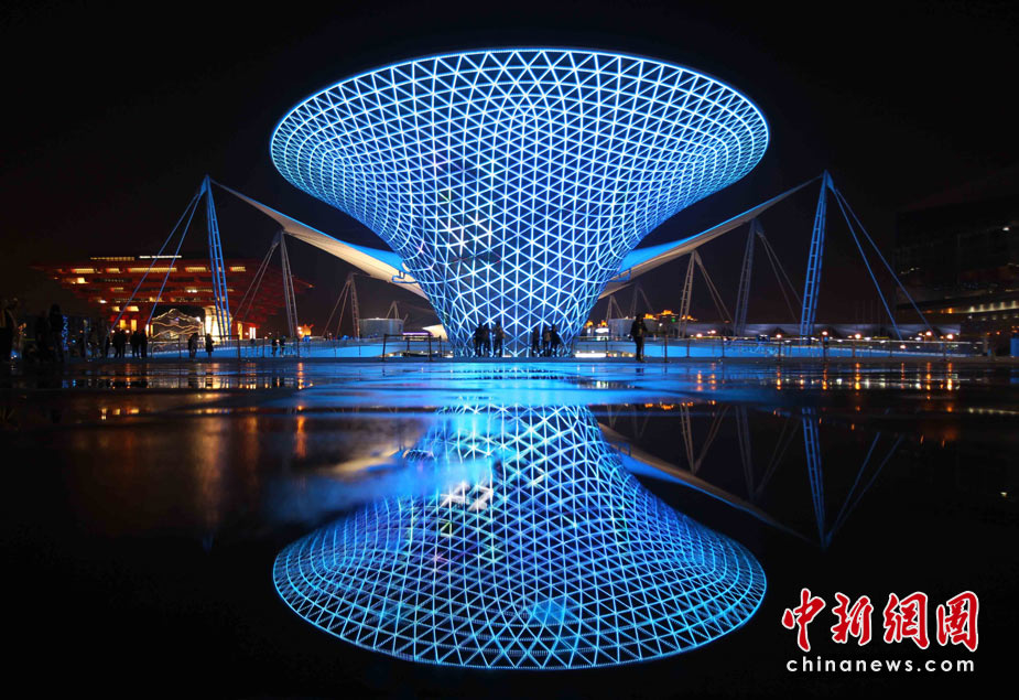 夜幕下的上海世博園區(qū)處處流露光華與璀璨,世博軸上的“陽(yáng)光谷”成為一個(gè)個(gè)流光溢彩的“夜光杯”,以不同色調(diào)交織成流動(dòng)的光影旋律,給游客們帶來(lái)難以忘懷的感受。 中新社發(fā) 宗金柱 攝
