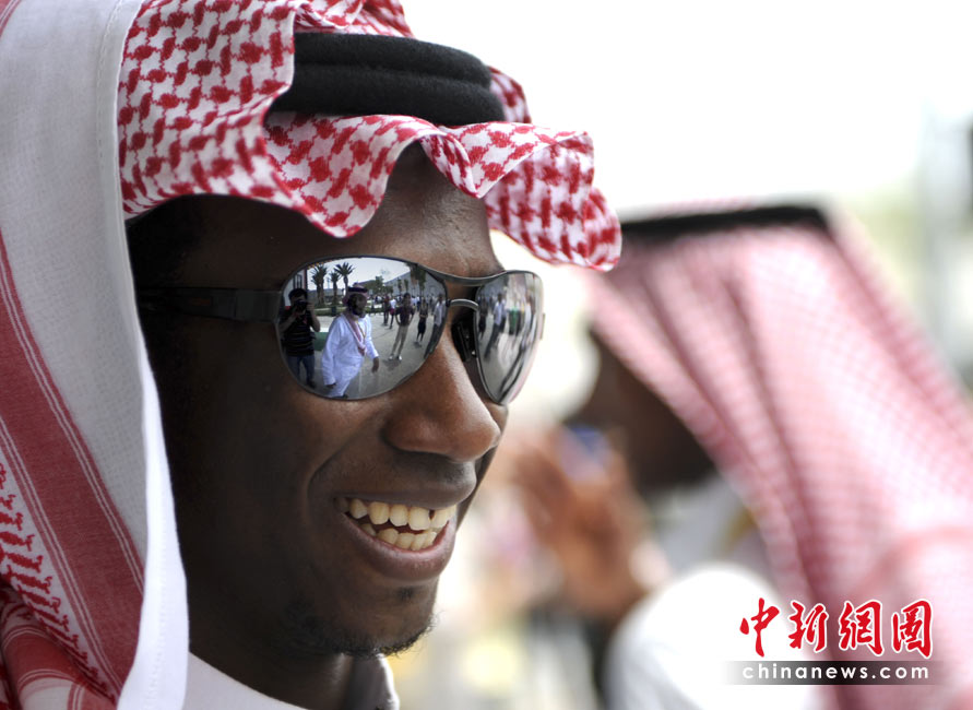 5月4日,上海世博園沙特館的工作人員歡樂(lè)接待游客。中新社發(fā) 廖攀 攝