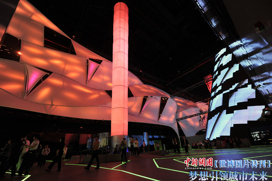 上海世博會(huì)城市未來(lái)館位于E片區(qū),館內(nèi)的展示以互動(dòng)方式開(kāi)始,邀請(qǐng)參觀者暢想未來(lái)的城市,然后運(yùn)用影片、書(shū)籍和雕塑等方式,體現(xiàn)歷史上人們對(duì)未來(lái)城市的夢(mèng)想、設(shè)計(jì)與實(shí)踐,表明未來(lái)城市建立在今日挑戰(zhàn)的基礎(chǔ)上,并且暢想未來(lái)城市的各種可能,闡述推動(dòng)人類(lèi)進(jìn)步永恒不變的精神元素。展望未來(lái)城市,一方面人類(lèi)城市的種種現(xiàn)實(shí)、挑戰(zhàn)和危機(jī)推動(dòng)人們?cè)谒伎贾袑ふ页鞘械某雎,另一方面人?lèi)不懈的創(chuàng)新能力和科技的飛速進(jìn)步也把人們引向不可思議的未來(lái)城市。中新網(wǎng)記者 王紅綱 攝