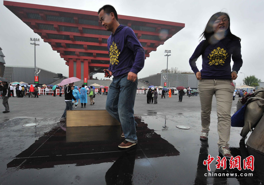 5月5日,上海世博會迎來開園五天來首個春雨天,雨中的中國館依然是游客參觀的最愛。中新社記者 賈國榮攝