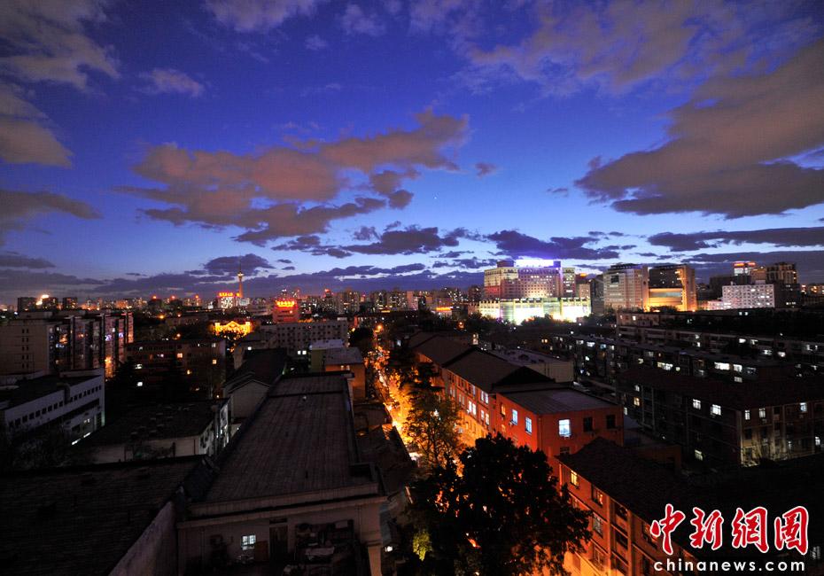 5月5日立夏,京城降雨今晨剛剛結(jié)束,霧氣伺機(jī)又起。傍晚時分,隨著四級北風(fēng)的到來,京城天氣逐漸轉(zhuǎn)晴,霧氣慢慢消散天空彤云密布夜色瑰麗。中新網(wǎng)記者 金碩 攝