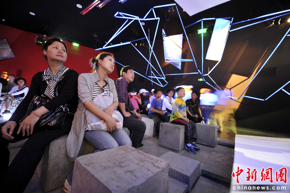 觀眾在觀看模擬演出,做的不是椅子,是一個(gè)個(gè)“石凳”,感覺就像是在廣場(chǎng)上。中新網(wǎng)記者 王紅綱 攝