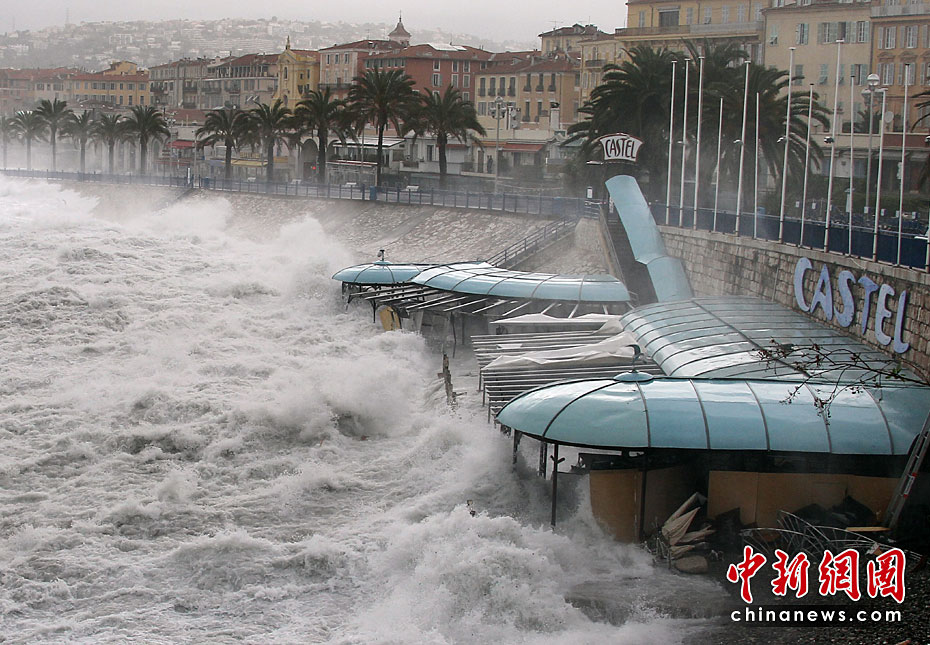巨浪襲擊法國(guó)尼斯海岸 城市交通癱瘓