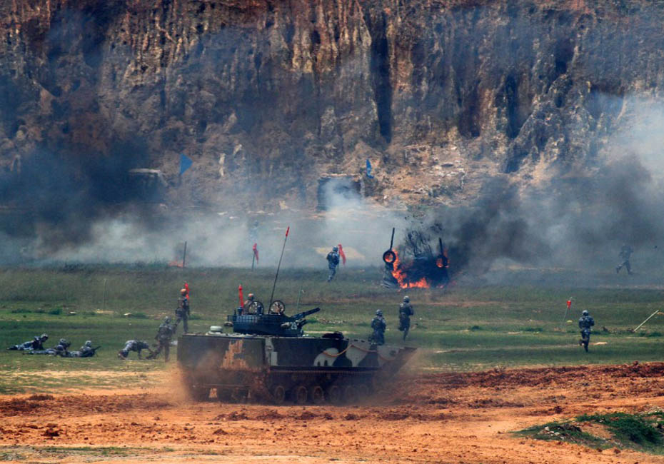 陸戰(zhàn)隊在訓(xùn)練場進行登陸作戰(zhàn)實兵實彈演練。圖片來源:新華網(wǎng) 查春明攝