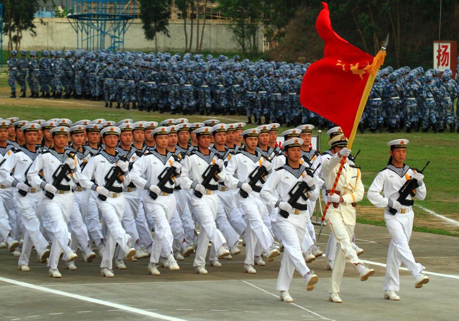 海軍陸戰(zhàn)隊(duì)儀仗隊(duì)通過(guò)主席臺(tái)。圖片來(lái)源:新華網(wǎng) 查春明攝