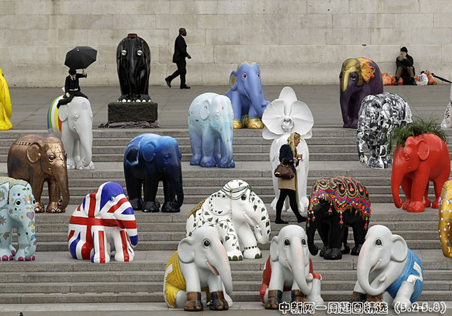 5月4日,2010年倫敦大象游行活動(dòng)當(dāng)日在特拉法爾加廣場啟動(dòng)。260個(gè)真象大小的彩繪雕塑將在倫敦各處展出,并將于6月30日拍賣為慈善組織籌款。圖片來源:中國新聞網(wǎng)>>點(diǎn)擊觀看詳細(xì)內(nèi)容