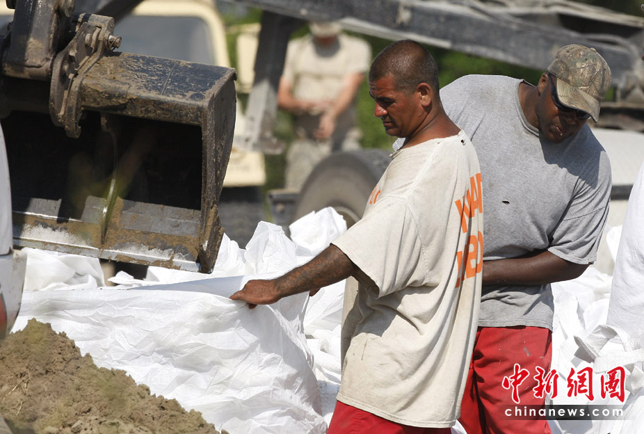 5月11日,美國(guó)路易斯安那州,國(guó)民警衛(wèi)隊(duì)用直升機(jī)向河口運(yùn)載沙袋,試圖阻止海上的油污進(jìn)入內(nèi)河。