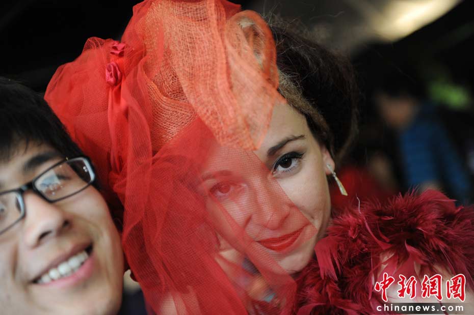 圖為法國風(fēng)情的禮儀小姐。 中新社記者 廖攀 攝