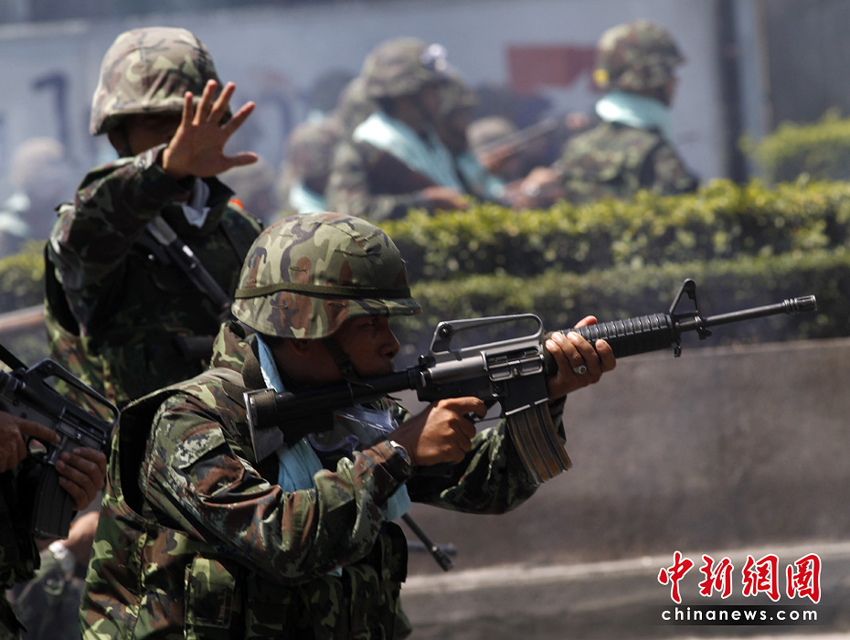 泰國政府軍和反政府示威者5月14日深夜在曼谷爆發(fā)嚴(yán)重暴力沖突。曼谷緊急醫(yī)療機(jī)構(gòu)15日稱,截止當(dāng)?shù)貢r間早晨6時,沖突已導(dǎo)致16人死亡,至少141受傷,傷者中包括3名外國人。圖片來源:中國新聞網(wǎng)