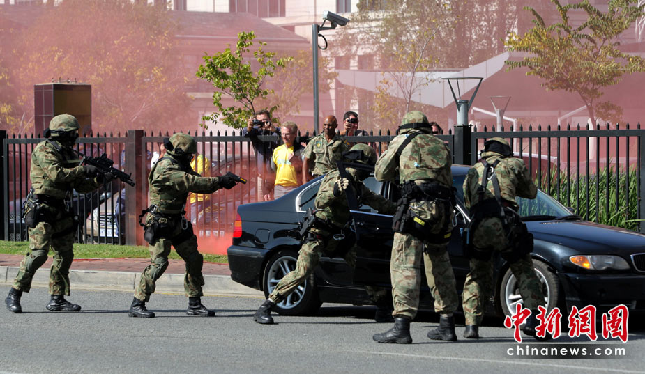 5月17日,南非約翰內(nèi)斯堡,警察舉行防暴演習,為下個月舉行的世界杯做準備。 圖片來源:中國新聞網(wǎng)