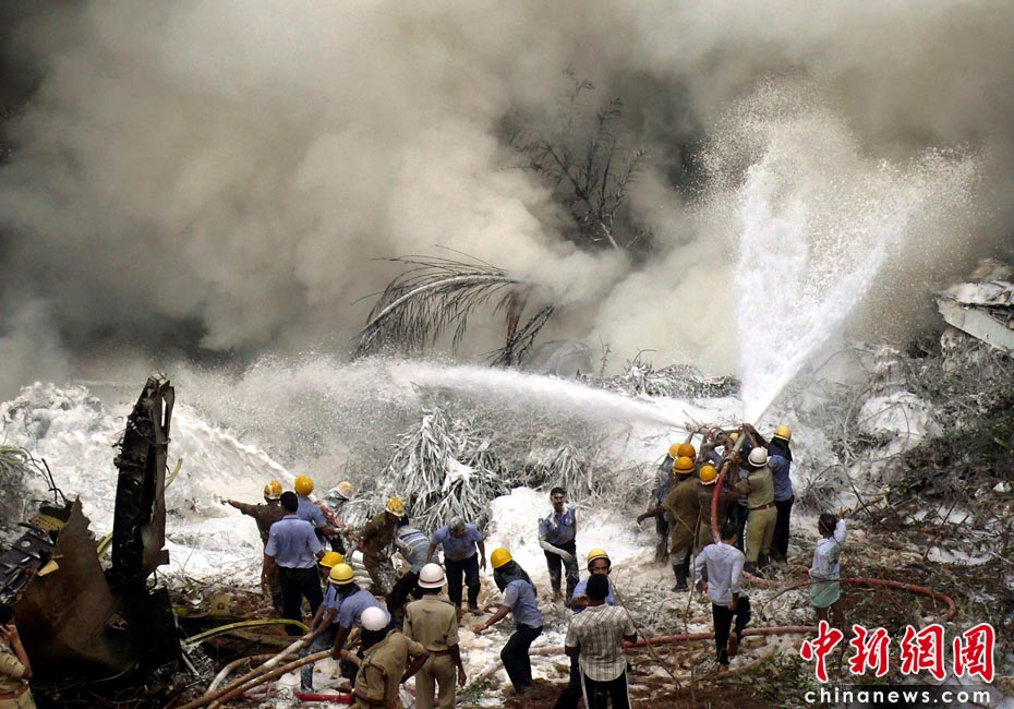 5月22日,印度一架客機在南部卡納塔克邦門格洛爾市降落時失事,造成至少160人喪生。目擊者稱,當天早上6點左右,這架飛機準備在馬拉格爾機場降落,但不知何故沖出跑道然后一頭扎到機場附近的叢林中起火爆炸。圖片來源:中國新聞網(wǎng)