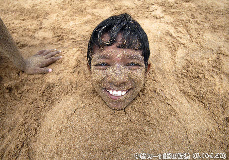 5月19日,印度孟買兒童在珠湖海灘玩耍。據(jù)官員和新聞報導(dǎo)稱,一股灼人熱浪席卷整個印度,許多城市氣溫在42至45攝氏度之間,造成160多人死亡。圖片來源:中國新聞網(wǎng)