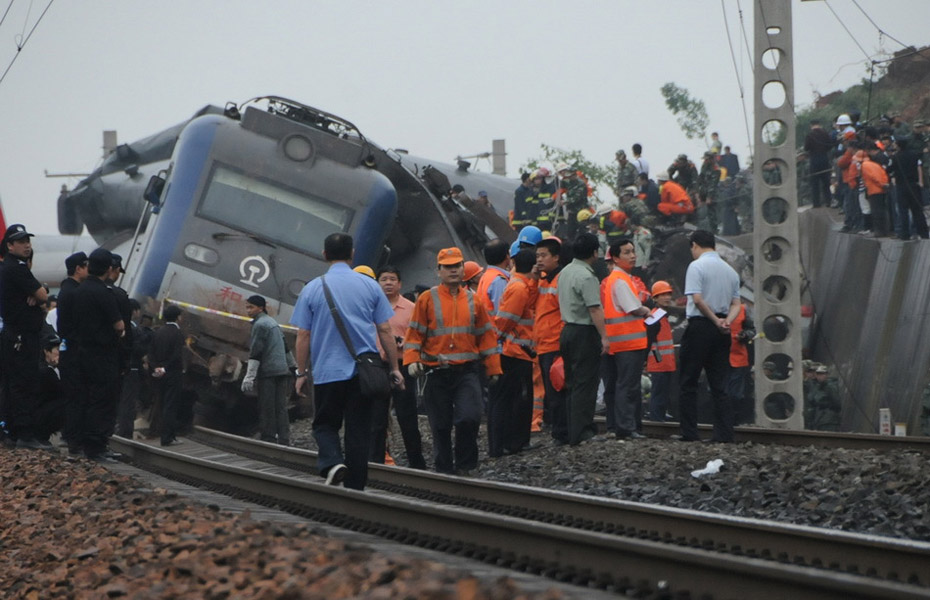 5月23日,2時10分,因連日降雨造成山體滑坡掩埋線路,由上海南開往桂林的K859次(編組17輛)旅客列車,運行至江西省境內滬昆鐵路余江至東鄉(xiāng)間(K699+700米處),發(fā)生脫線事故,機車及機后第1至9位車輛脫線,中斷上下行線路行車。目前,初步確認3人死亡、10人受傷。事故正在進一步清理中。(圖片來源:新華網)