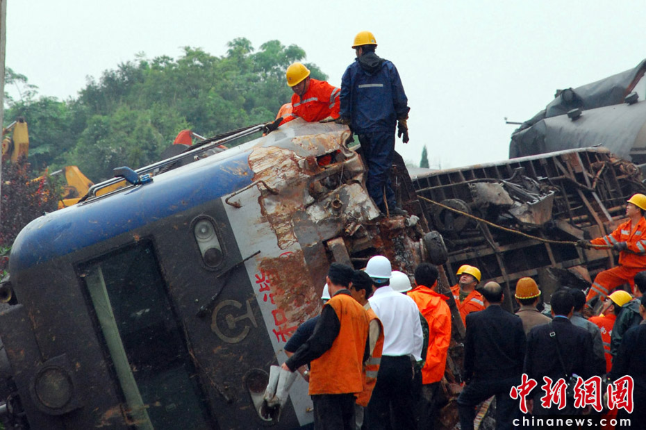 5月23日凌晨2時10分,滬昆鐵路江西東鄉(xiāng)段發(fā)生一起客運(yùn)列車脫線事故,截至上午9時,已有10人遇難,車內(nèi)乘客全部被轉(zhuǎn)移,現(xiàn)場救援工作正在緊張進(jìn)行。事故發(fā)生后,南京軍區(qū)武警,江西省消防、交警,中鐵電氣化局、醫(yī)療等部門立即組織近萬名人員參與搶險救災(zāi),目前現(xiàn)場已有10余臺挖土機(jī)和吊車參與救援。中新社發(fā) 劉占昆 攝