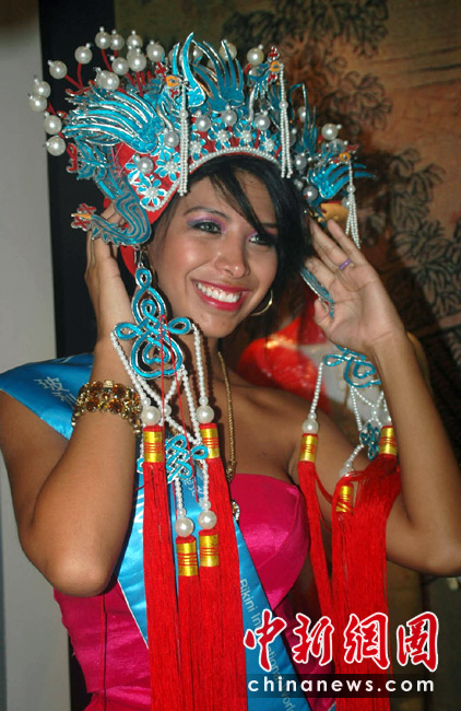 5月24日,海南三亞,正在此間參加第35屆國(guó)際比基尼小姐全球總決賽的64位佳麗,參觀了三亞一家珍珠博物館。佳麗們對(duì)漂亮的珍珠十分鐘愛(ài),在攝影師前擺出各種“POSE”,留下美麗身影。 中新社記者 尹海明攝