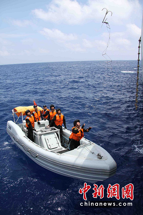 使用帶錨勾的鋼絲軟梯攀爬。胡軍 攝