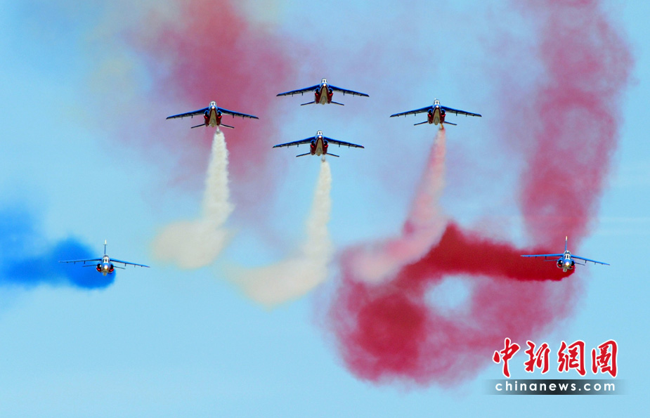 5月25日,法國巡邏兵特技飛行表演隊(duì)在普羅旺斯地區(qū)進(jìn)行驚險(xiǎn)的飛行表演。