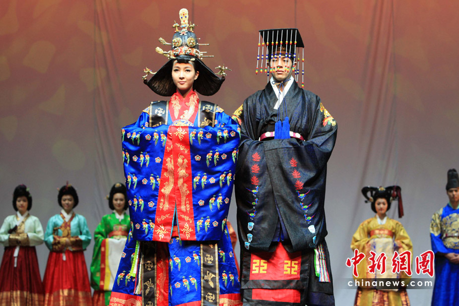 5月26日,韓服時(shí)裝秀在上海世博會(huì)上演,其宮廷服裝為別致內(nèi)容之一。當(dāng)日是世博會(huì)韓國(guó)館日,韓國(guó)舉行多項(xiàng)文藝表演推廣該國(guó)文化。中新社發(fā) 潘索菲 攝
