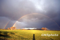 草原現(xiàn)罕見雙彩虹