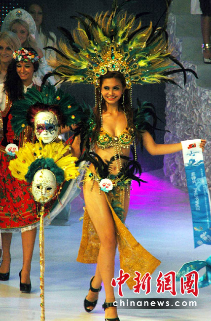 5月29日晚,第35屆國際比基尼小姐全球總決賽在三亞“美麗之冠”落下帷幕,22歲的羅馬尼亞選手Diana Irina Boanca摘得冠軍?倹Q賽還評選出了四季小姐,18歲的中國選手趙茜獲得“秋季小姐”,澳大利亞、委內(nèi)瑞拉和拉脫維亞選手分別獲得春、夏、冬季小姐。共有來自世界各地的64位佳麗參加了總決賽的角逐。當晚,佳麗們展示了各自國家或地區(qū)特色的民族服飾,用不同的方式展示了不同風格的比基尼“秀”,性感迷人。 中新社記者 尹海明攝