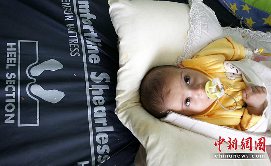 圖為費盧杰(Falluja )綜合醫(yī)院里的一位伊拉克兒童患者。據(jù)當(dāng)?shù)蒯t(yī)生得知,近期患有先天性缺陷的兒童的數(shù)量急劇激增。圖片來源:CFP