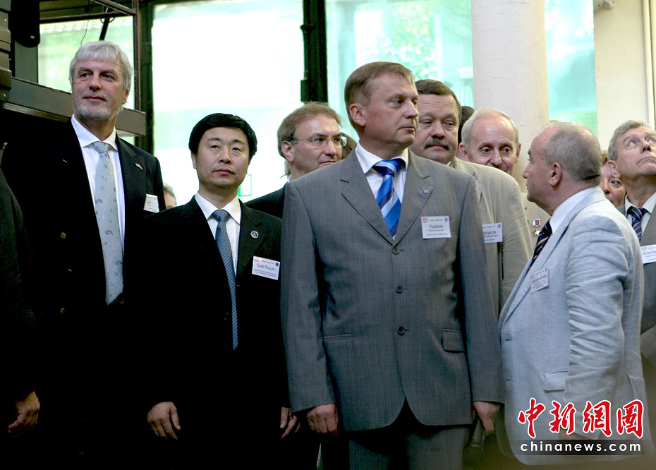 當(dāng)?shù)貢r(shí)間6月3日14時(shí),“火星-500”實(shí)驗(yàn)艙最后一道艙門(mén)關(guān)閉,人類歷史上首次模擬火星載人航天飛行試驗(yàn)就此拉開(kāi)帷幕。圖為中國(guó)航天員科研訓(xùn)練中心副主任白延強(qiáng)(左二)在進(jìn)艙儀式上。中新社記者 田冰 攝