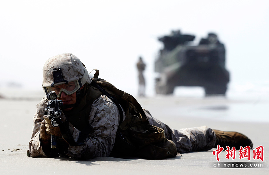 當(dāng)?shù)貢r(shí)間6月4日,約5000名水兵和陸戰(zhàn)隊(duì)員在美國(guó)加利福尼亞州舉行了代號(hào)為“黎明突擊”的搶灘登陸軍事演習(xí)。圖片來(lái)源:中國(guó)新聞網(wǎng)