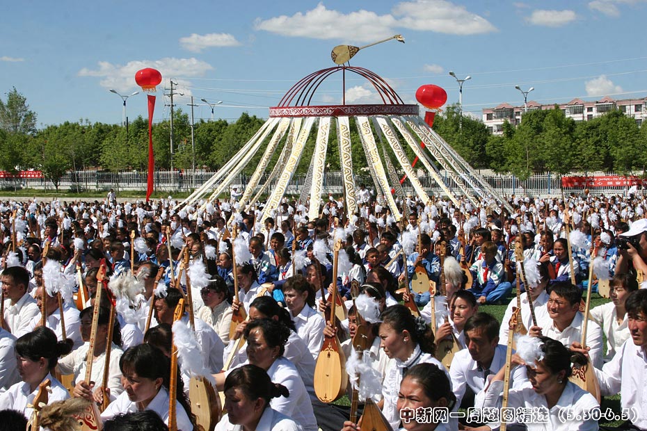 5月30日,新疆托里縣28個(gè)民族10495人共同參加冬不拉樂器表演,創(chuàng)下上海吉尼斯世界紀(jì)錄。萬人同奏的哈薩克族樂曲名為《凱乃斯》,漢語意為“和諧”。圖片來源:中國新聞網(wǎng)>>點(diǎn)擊觀看詳細(xì)內(nèi)容