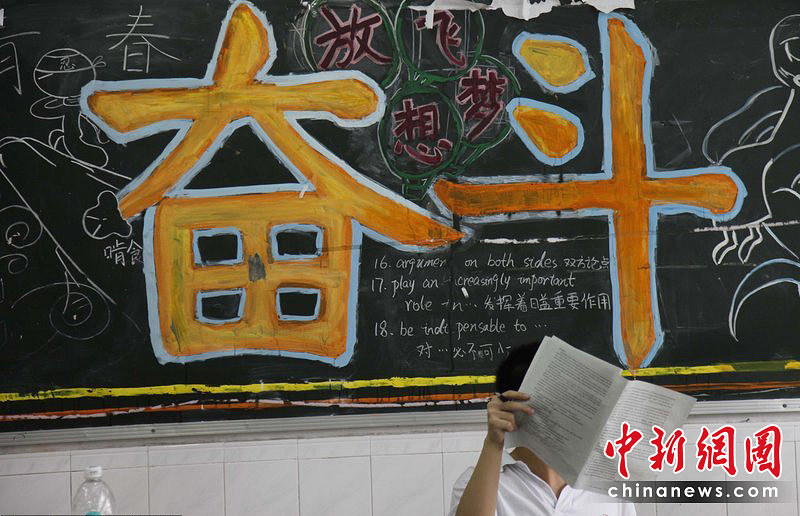 6月1日,廣州市第四十七中學(xué)高三(一)班,高考日益臨近,黑板上斗大的“奮斗”兩個(gè)字就是一面警鐘,讓同學(xué)們不敢懈怠。夏宇/CFP