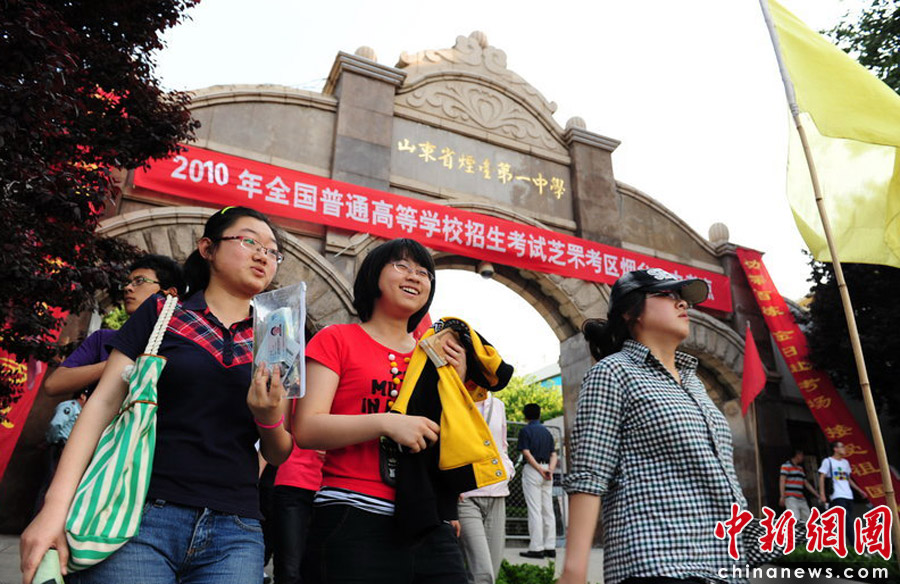 2010年6月6日,即將參加高考的考生熟悉完煙臺(tái)一中考點(diǎn)后,充滿自信地走出校門。初陽/CFP