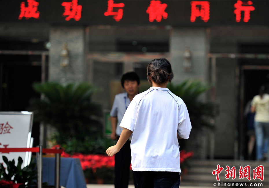 2010年全國高考6月7日日拉開大幕,957萬考生走進考場。由于報名人數(shù)減少,而招生計劃增加,教育部預計今年全國高考平均錄取率將會增加近7%。圖為首都師范大學第二附屬中學考點。中新網(wǎng)記者 金碩 攝
