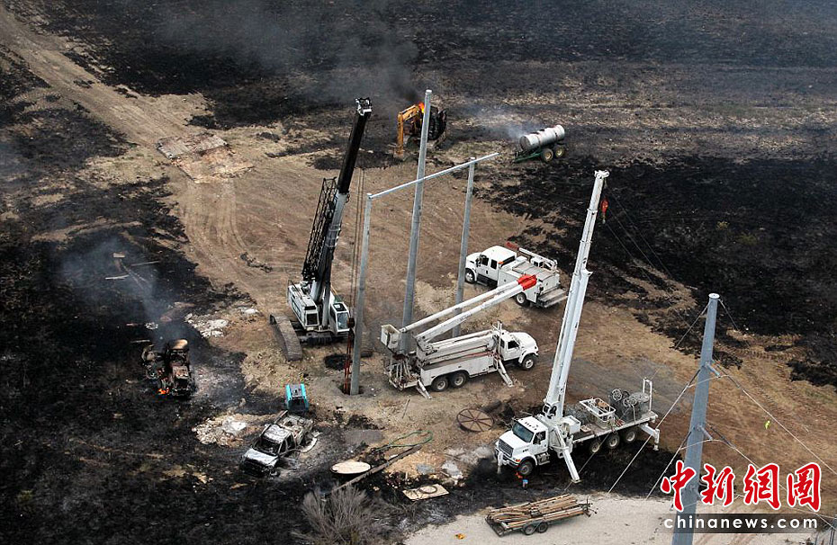 當(dāng)?shù)貢r(shí)間6月7日,美國得克薩斯州北部發(fā)生一起天然氣管道爆炸事件。幾名工人在進(jìn)行挖掘作業(yè)時(shí)觸及鋪設(shè)在地下的天然氣管道,引發(fā)爆炸及大火,造成至少一名工人死亡,7人受傷。圖片來源:中國新聞網(wǎng)