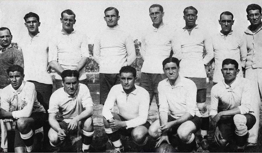 圖為首屆冠軍隊(duì)烏拉圭。第一屆世界杯參賽隊(duì)只有13支,包括4支歐洲球隊(duì)、8支南美洲球隊(duì)以及一支來自美國的代表隊(duì),不過這屆賽事體現(xiàn)了當(dāng)時(shí)世界足壇的最高水平。東道主烏拉圭隊(duì)4比2戰(zhàn)勝阿根廷奪得首屆冠軍,首都蒙得維的亞慶祝球隊(duì)奪冠的活動(dòng)持續(xù)了幾天幾夜。為了紀(jì)念這場勝利,決賽后的第二天(7月31日)被定為全國性節(jié)日。