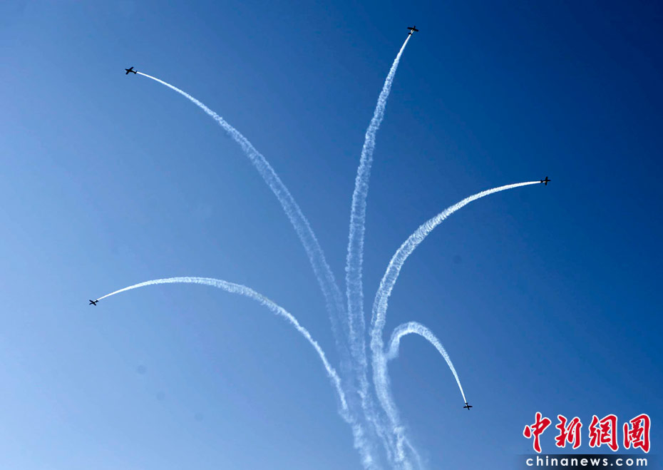 當?shù)貢r間6月9日,南非約翰內(nèi)斯堡足球城,飛行表演隊在進行演練。中新社發(fā) 廖攀 攝