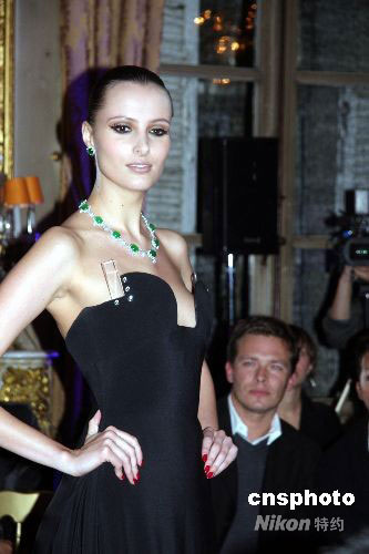 以“美麗永恒”為主題的中華風(fēng)尚珠寶藝術(shù)展十月二日晚在法國(guó)巴黎舉行。圖為模特兒在展示中國(guó)珠寶作品。中新社發(fā) 吳衛(wèi)中 攝