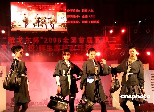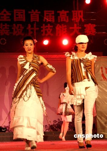 12月11日晚,中國高職院校服裝設(shè)計(jì)技能大賽在揚(yáng)州舉行。共有來自江蘇、安徽、河北、江西、湖北、廣西、北京、重慶、新疆、內(nèi)蒙古等10多個(gè)省市自治區(qū)的53所高職高專院校設(shè)計(jì)作品911件,經(jīng)專家組初評(píng),有64個(gè)系列作品入圍決賽,最終評(píng)選出2個(gè)金獎(jiǎng)、12個(gè)銀獎(jiǎng)、24個(gè)銅獎(jiǎng)和最佳效果圖獎(jiǎng)、最佳工藝獎(jiǎng)等6個(gè)單項(xiàng)獎(jiǎng)。中新社發(fā) 崔佳明 攝