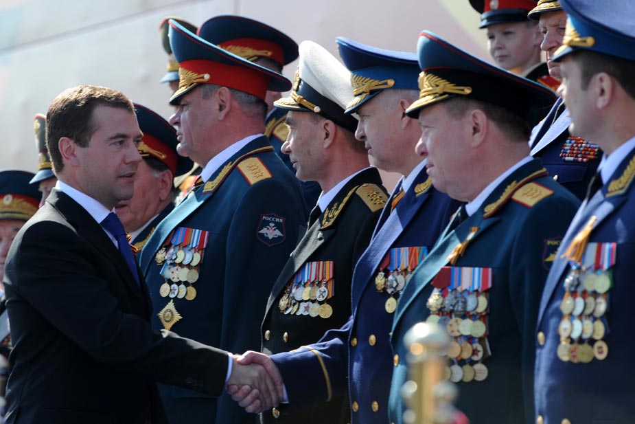 俄羅斯紀(jì)念衛(wèi)國(guó)戰(zhàn)爭(zhēng)勝利64周年的大型閱兵于北京時(shí)間5月9日14時(shí)在莫斯科紅場(chǎng)正式開始。其中被稱為俄軍殺手锏的如“凱旋”S-400導(dǎo)彈等尖端武器的登場(chǎng)是此次閱兵最大亮點(diǎn)。俄羅斯總統(tǒng)梅德韋杰夫,總理普京出席了閱兵式。