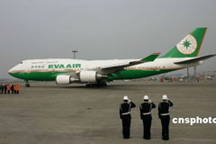 運(yùn)送大熊貓專機(jī)抵達(dá)臺(tái)北桃園機(jī)場(chǎng)
