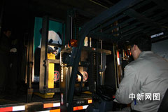 工作人員運(yùn)送“團(tuán)團(tuán)”“圓圓”