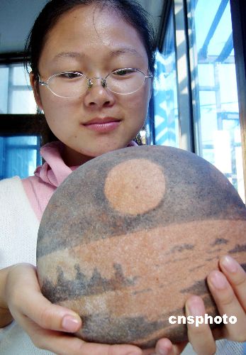 10月28日拍攝的天然奇石“嫦娥奔月”。當(dāng)日,蘇州顧小姐展示一塊“嫦娥奔月”的黃河石,該石呈扁圓狀,寬34厘米、高40厘米,平滑的表面有一個直徑大約5厘米的圓,呈黃色,像一輪滿月。中新社發(fā) 李俊鋒 攝