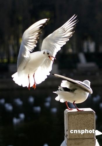 紅嘴鷗成雙嬉戲 提前飛抵昆明越冬