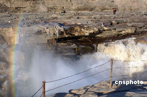 12月14日,山西吉縣壺口瀑布冬季景色美如畫,吸引游人駐足觀賞。中新社發(fā) 平白 攝