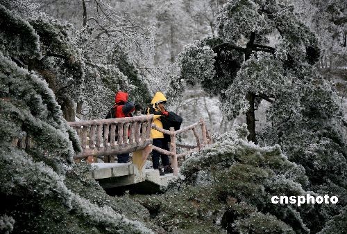 圖:安徽黃山景區(qū)出現(xiàn)雪松景觀