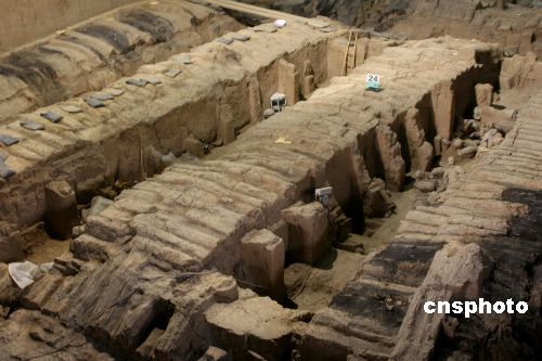 10月24日獲悉,已開放13年的西安兵馬俑二號坑陳列廳將于2007年11月1日起封館,對展廳屋頂漏雨情況進(jìn)行全面處理。秦始皇兵馬俑二號坑總面積約8000平方米,是3個坑中最為壯觀的軍陣,目前,二號坑中發(fā)現(xiàn)的文物2000件,其中將軍俑、鞍馬俑、跪姿射俑為首次發(fā)現(xiàn)。二號坑陳列廳于1988年動工修建,1994年建成對外開放。此次修館是對二號坑屋頂進(jìn)行翻修,將原屋頂揭掉重新建造屋頂。二號坑從11月1日起封閉,封館之后文物將陸續(xù)被轉(zhuǎn)移到文物展覽廳等地方。在文物搬離之后,為保證坑內(nèi)還未發(fā)掘文物的安全,二號坑將全部回填、嚴(yán)密覆蓋。這一工程大約為期5個月,預(yù)計到2008年4月20日,二號坑屋頂將處理完畢,“五一”之前再向游客開放。中新社發(fā) 程千俊 攝