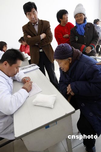 11月1日,北京市扶貧濟(jì)困春風(fēng)行動(dòng)辦公室和博愛堂中醫(yī)門診部聯(lián)合來到北京平谷劉家店,為農(nóng)民進(jìn)行義診活動(dòng)。由于距離城市太遠(yuǎn),許多農(nóng)民沒有機(jī)會(huì)去城市大醫(yī)院看病,使的小病慢慢積累成疾病,醫(yī)療下鄉(xiāng)活動(dòng)使得農(nóng)民在第一時(shí)間就能得到醫(yī)療幫助。中新社發(fā) 杜洋 攝