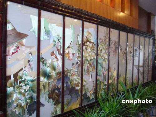 11月2日,巨型蘇繡《群仙祝壽圖》。近日,一幅長12米、寬5米的巨型蘇繡《群仙祝壽圖》亮相江蘇蘇州一家商場,該作品由12位繡娘花費近半年時間繡制完成,標價98萬元人民幣。中新社發(fā) 李俊鋒 攝