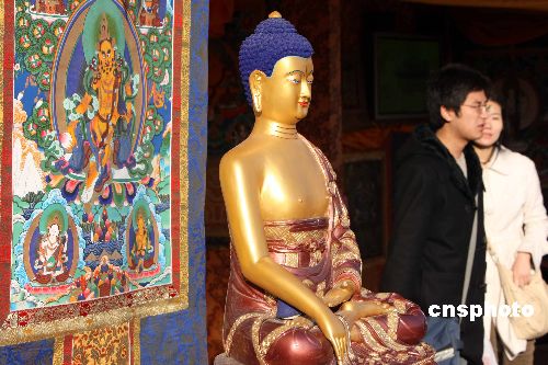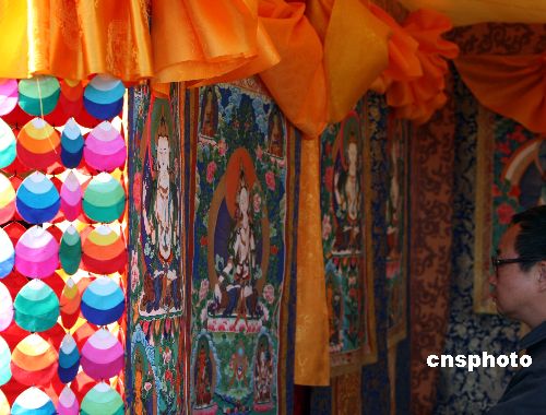 11月5日,中國青海熱貢藝術(shù)展會揭幕儀式在北京舉行。青海省黃南藏族自治州的“中國青海熱貢藝術(shù)展”本月2日首度亮相北京秋季書市后,神秘而璀璨的青海熱貢文化藝術(shù)瑰寶大放異彩,成為北京書市前所未有的一大亮點,為本屆書市帶來一股具有濃郁青海文化特色的異域之風(fēng),使京城市民有緣與這一中國首批非物質(zhì)文化遺產(chǎn)零距離接觸。中新社發(fā) 任海霞 攝