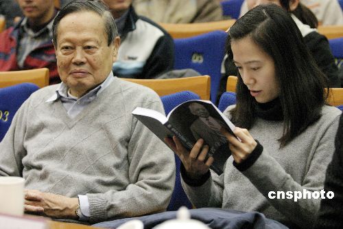 12月3日,數(shù)學大師陳省身逝世三周年紀念大會暨《陳省身與中國數(shù)學》新書首發(fā)儀式在天津舉行。陳省身先生好友、著名物理學家楊振寧攜妻子翁帆出席了新書首發(fā)儀式。中新社發(fā) 孟憲君 攝
